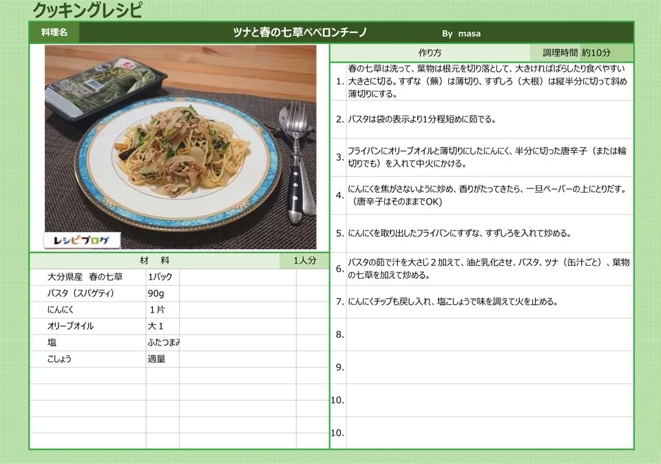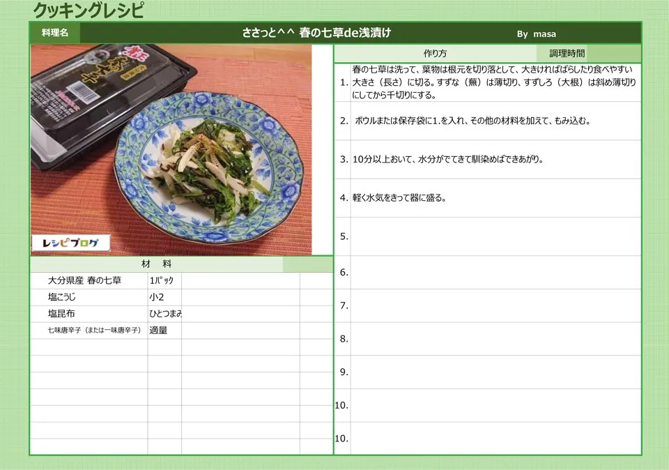 レシピ集 大分県産「春の七草」加工品を使用したお手軽レシピの一覧です! ・レシピ1「七草フリッタータ」 大分の七草を使ったレシピの紹介です。 (画像をクリックすると拡大して見ることができます。) 「七草フリッタータ」 ◆「七草フリッタータ」のレシピ ・レシピ2「七草のペペロンチーノ」 大分の七草を使ったレシピの紹介です。 (画像をクリックすると拡大して見ることができます。) 「七草のペペロンチーノ」 ◆「七草のペペロンチーノ」のレシピ レシピ3「七草のお味噌汁」 大分の七草を使ったレシピの紹介です。 (画像をクリックすると拡大して見ることができます。) 「七草のお味噌汁」 ◆「七草のお味噌汁」のレシピ レシピ4「春の七草で洋風和え物」 大分の七草を使ったレシピの紹介です。 (画像をクリックすると拡大して見ることができます。) 「春の七草で洋風和え物」 ◆「春の七草で洋風和え物」のレシピ ・レシピ5「ごま油香る春の七草がゆ」 大分の七草を使ったレシピの紹介です。 (画像をクリックすると拡大して見ることができます。) 「ごま油香る春の七草がゆ」 ◆「ごま油香る春の七草がゆ」のレシピ ・レシピ6「春の七草サラダ」 大分の七草を使ったレシピの紹介です。 (画像をクリックすると拡大して見ることができます。) 「春の七草サラダ」 ◆「春の七草サラダ」のレシピ ・レシピ7「ささっと^^ 春の七草de浅漬け」 大分の七草を使ったレシピの紹介です。 (画像をクリックすると拡大して見ることができます。) 「ささっと^^ 春の七草de浅漬け」 ◆「ささっと^^ 春の七草de浅漬け」のレシピ ・レシピ8「七草たまごがゆ」 大分の七草を使ったレシピの紹介です。 (画像をクリックすると拡大して見ることができます。) 「七草たまごがゆ」 ◆「七草たまごがゆ」のレシピ ・レシピ10「七草と素麺のお吸物」 大分の七草を使ったレシピの紹介です。 (画像をクリックすると拡大して見ることができます。) 「七草と素麺のお吸物」 ◆「七草と素麺のお吸物」のレシピ ・レシピ11「春の七草サラダ」 大分の七草を使ったレシピの紹介です。 (画像をクリックすると拡大して見ることができます。) 「春の七草サラダ」 ◆「春の七草サラダ」のレシピ ・レシピ12「ツナと春の七草ペペロンチーノ」 大分の七草を使ったレシピの紹介です。 (画像をクリックすると拡大して見ることができます。) 「ツナと春の七草ペペロンチーノ」 ◆「ツナと春の七草ペペロンチーノ」のレシピ Corporate Lite 2025 | All Rights Reserved. Corporate Lite theme by Flythemes